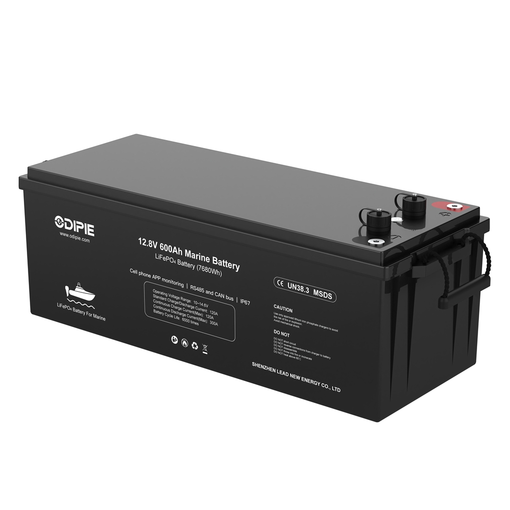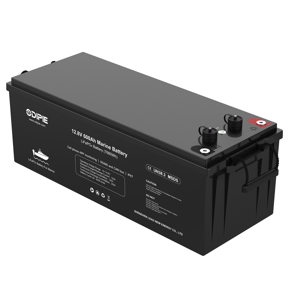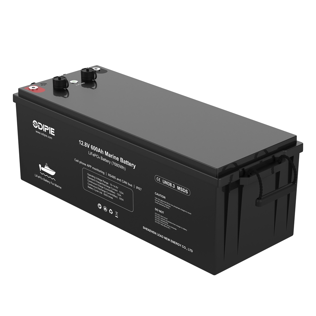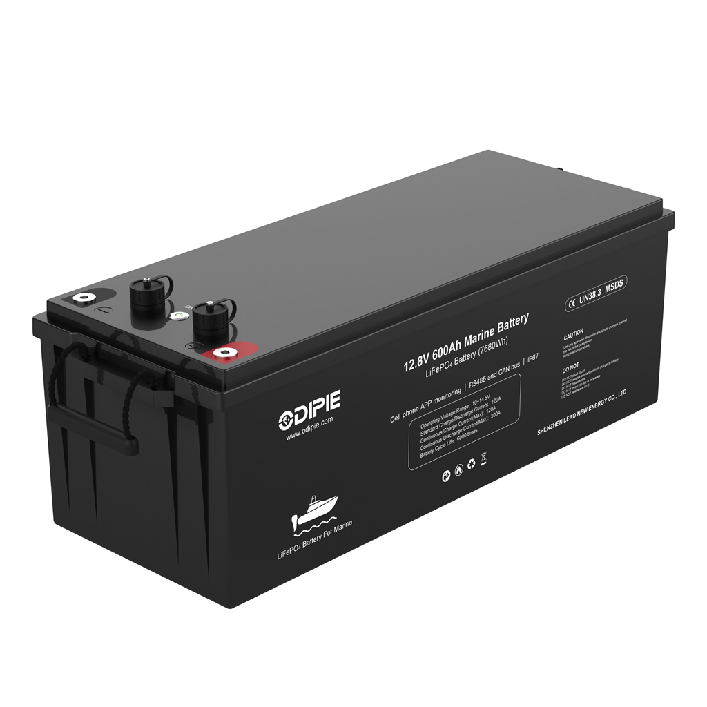 Source Shenzhen-made Odipie 12.8V 600Ah LiFePO4 battery—compact 7.68 kWh pack with smart BMS, Bluetooth, and 4P2S scaling for off-grid solar, RV & telecom dealers in Europe and North America.