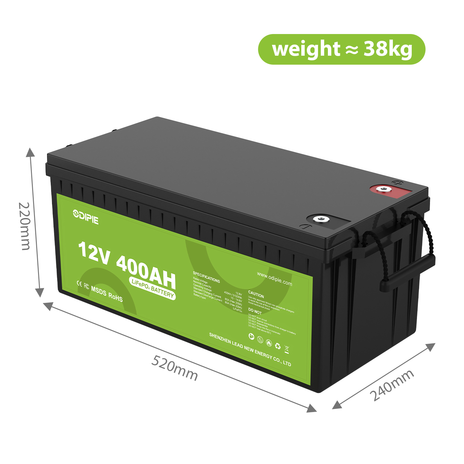 Odipie 12V 400Ah Bluetooth LiFePO₄ battery gives wholesalers 5.12kWh usable energy, 200 A BMS, smart disconnect, and phone monitoring—ideal for solar, RV, marine.