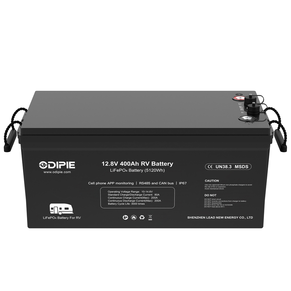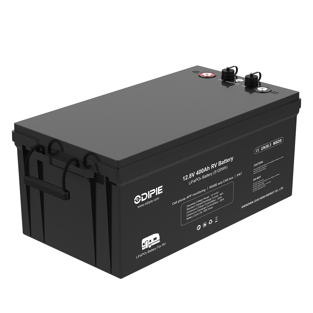 Odipie 12V 400Ah LiFePO₄ battery delivers 5.12 kWh, 250 A BMS, 5,000 cycles and -20 °C self-heating in an IP67, 42 kg module. Bluetooth monitoring and UN38.3 certification make it the ideal maintenance-free energy-storage solution for solar, RV, marine and industrial distributors.